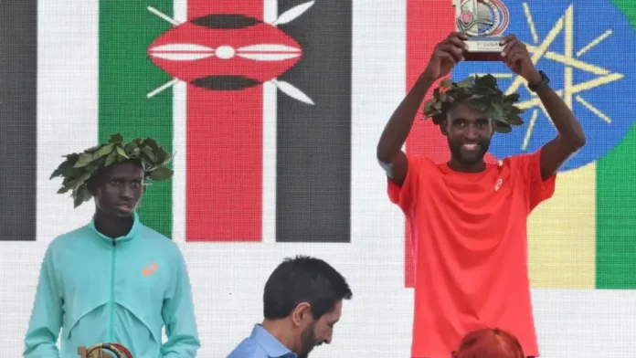 Com uma arrancada nos minutos finais, o etíope Muse Gisachew ultrapassou o queniano Jonathan Kipkoech Kamosong e venceu hoje (31) a centésima edição da Corrida Internacional de São Silvestre.