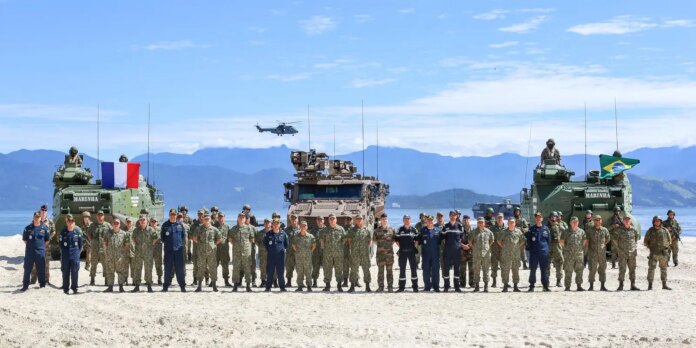 Franceses e brasileiros realizam missão de formação e projeção com cerca 1,3 mil militares dos dois países – Foto: Marinha do Brasil/divulgação